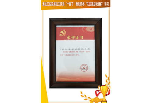黑龍江省直屬機(jī)關(guān)評選“十百千”活動(dòng)獲得“先進(jìn)基層黨組織”稱號(hào)